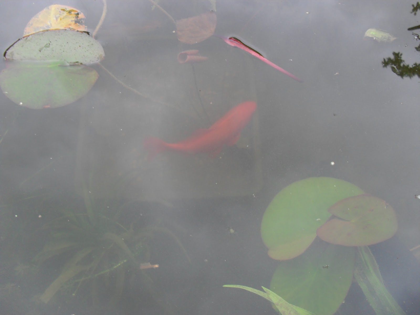With the treatment added. It turns the pond a wonderful psychedelic green. Quite impressive! So fingers and toes crossed this will work, as we have some quite old and large fish which we would be sad to lose.
